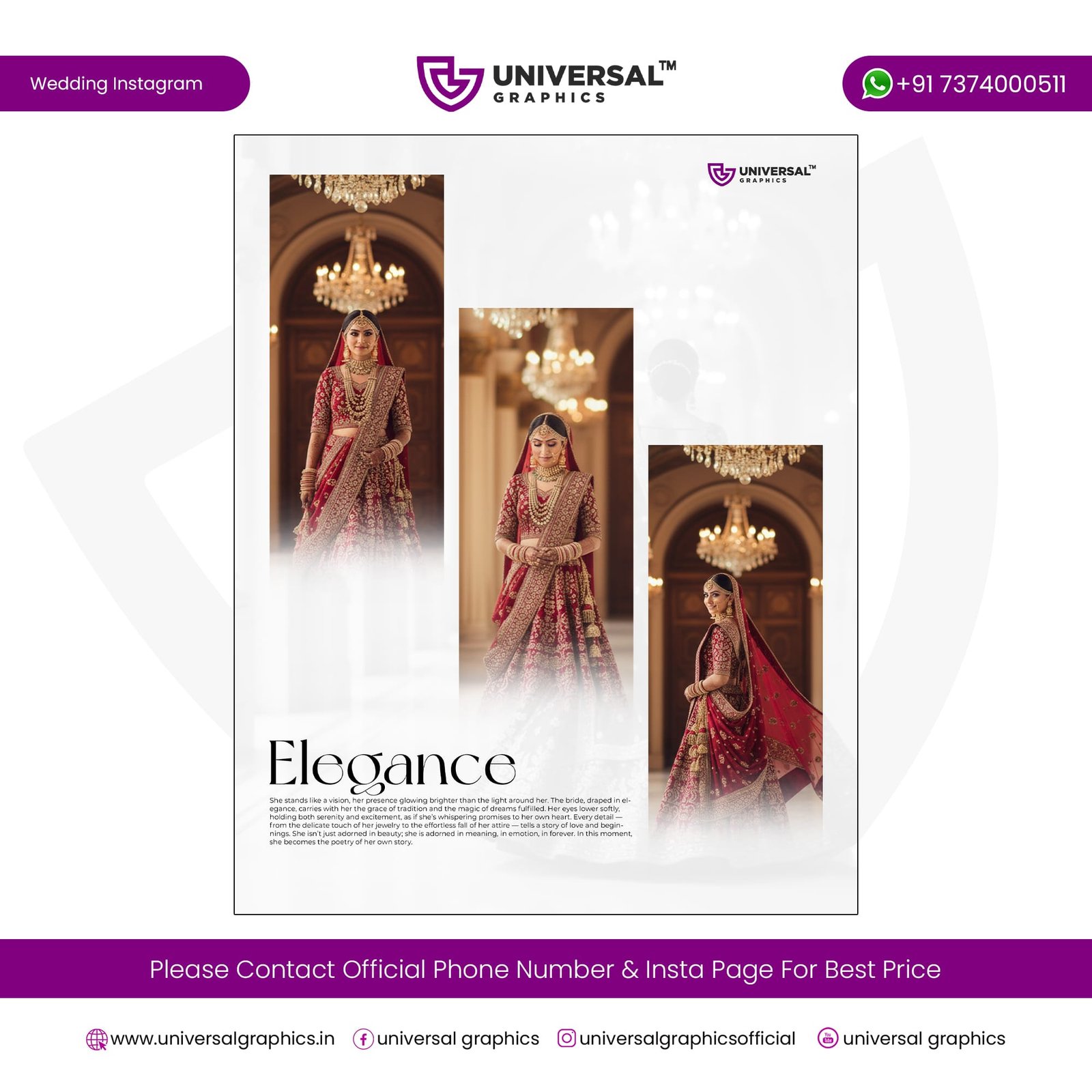 Are you looking to make your wedding-related Instagram posts stand out with elegant, professional, and eye-catching designs? Then this Wedding Instagram Post Design PSD Template Pack from Universal Graphics is exactly what you need. Whether you’re a designer, wedding planner, or digital creator, these editable PSD templates will help you create stunning posts in just a few clicks — no need to design from scratch.